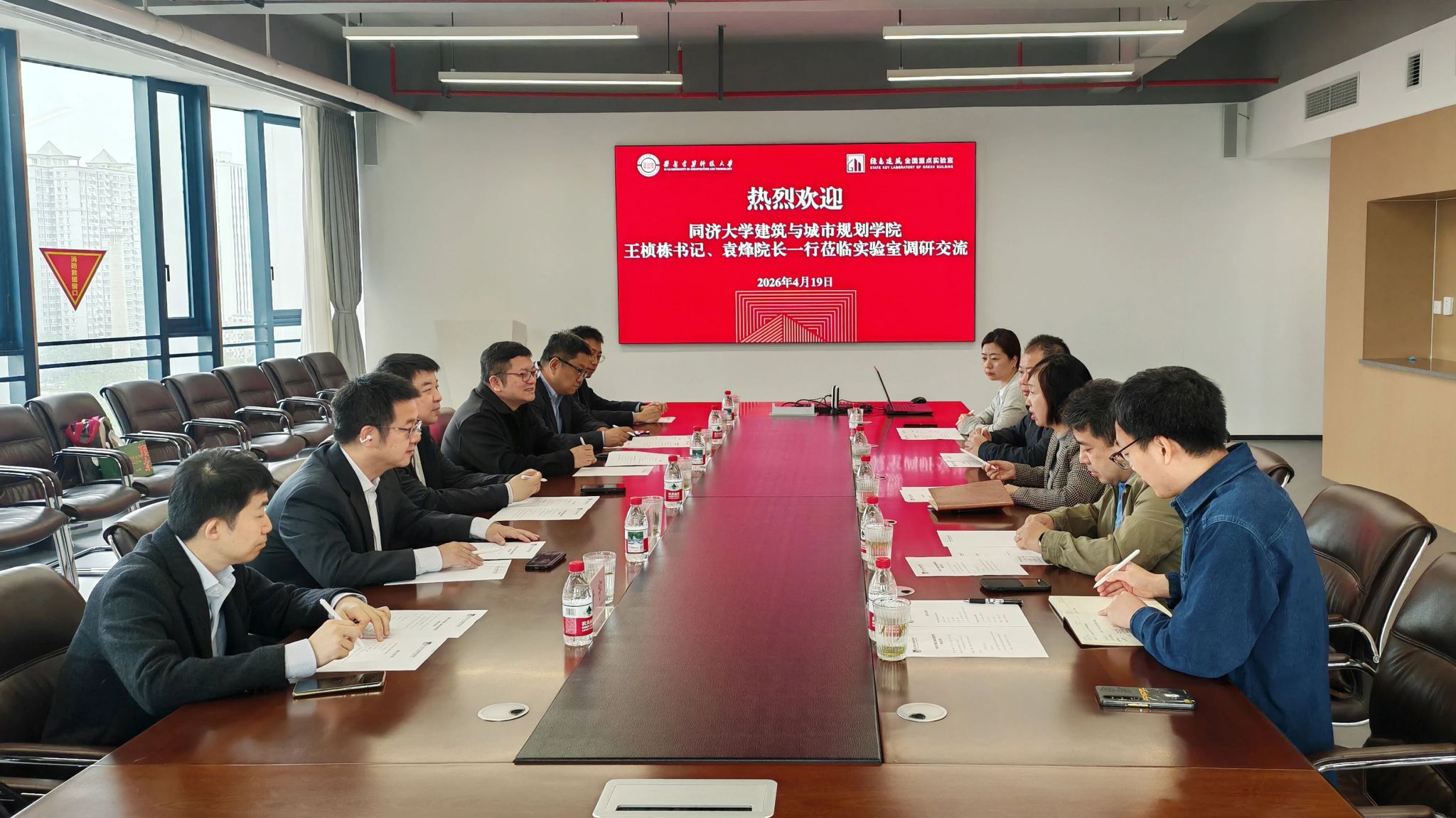 4月19日,同济大学建筑与城市规划学院党委书记王桢栋、院长袁烽一行到访绿色建筑全国重点实验室并开展交流座谈。副校长、实验室常务副主任王怡教授,实验室副主任陶毅、胡伟及相关工作人员参加会议。