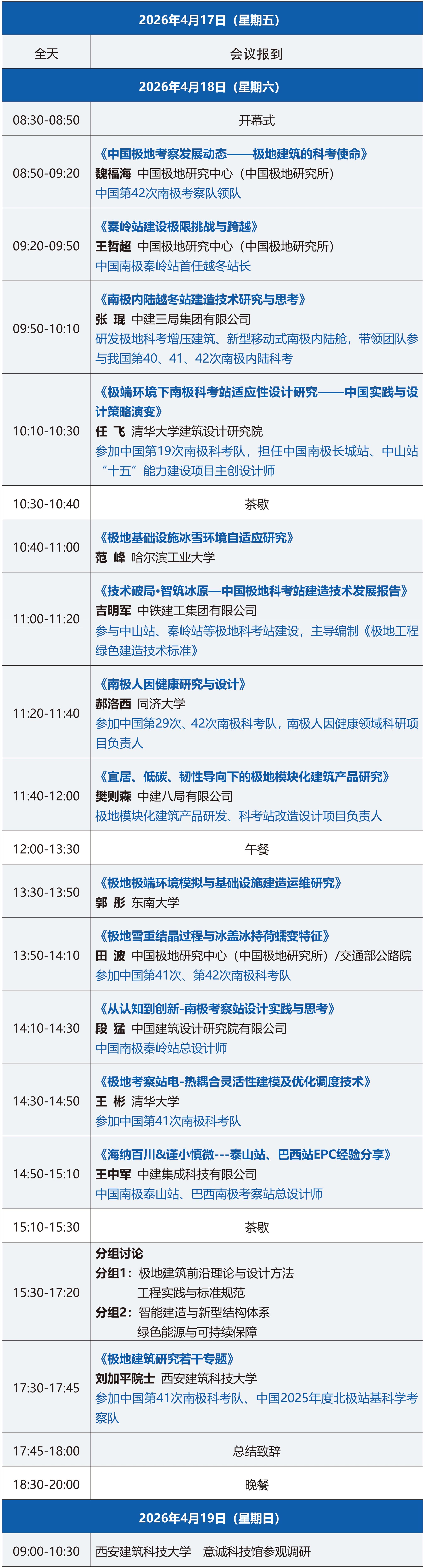 为深入贯彻落实习近平总书记重要指示,积极应对极地等极端环境对工程建造提出的前沿挑战,促进产学研用深度融合与协同创新,推动我国极地建筑领域的技术进步与成果转化,拟定于2026年4月17日至19日在陕西西安举办“首届极地建造技术发展与应用研讨会”。