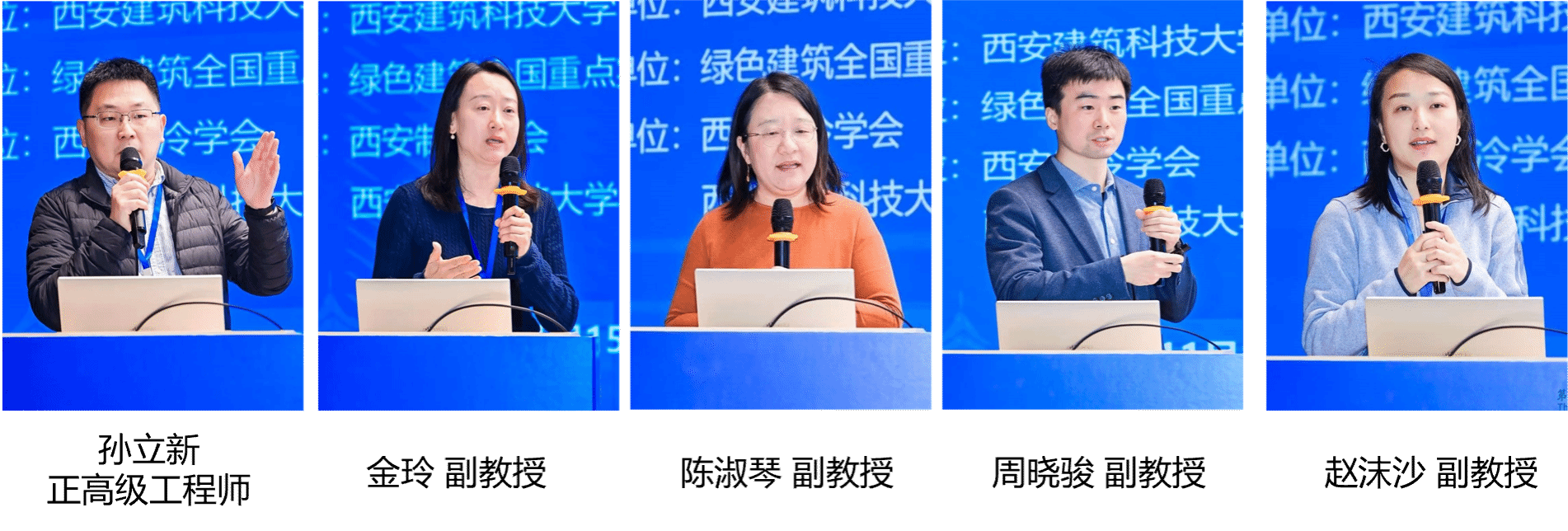 第一单元由西安建筑科技大学王莹莹教授主持。哈尔滨工业大学刘京教授作题为《复合冰壳结构建筑热环境形成机制研究》的报告。西安建筑科技大学刘艳峰教授作题为《高原低碳建筑热湿氧宜居环境营造理论与关键技术》的报告。北京工业大学谢静超教授作题为《木结构建筑墙体热湿迁移特性研究》的报告。沈阳建筑大学于水教授作题为《热-湿-力耦合效应下建筑非透明结构耐久性研究》的报告。